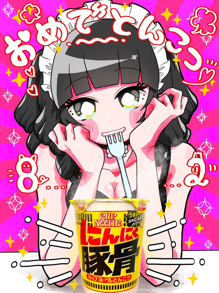 💗🐽💗🐽💗相沢梨紗ちゃんお誕生日おめでとんこつ💗🐽💗🐽💗 カップヌードルでガッツ入れて、元気いっぱいなかわいいお姿たくさん見せてね❣️らぶだよ〜😘 #でんぱ相沢BD #日清でんぱオンライン #でんぱイラ