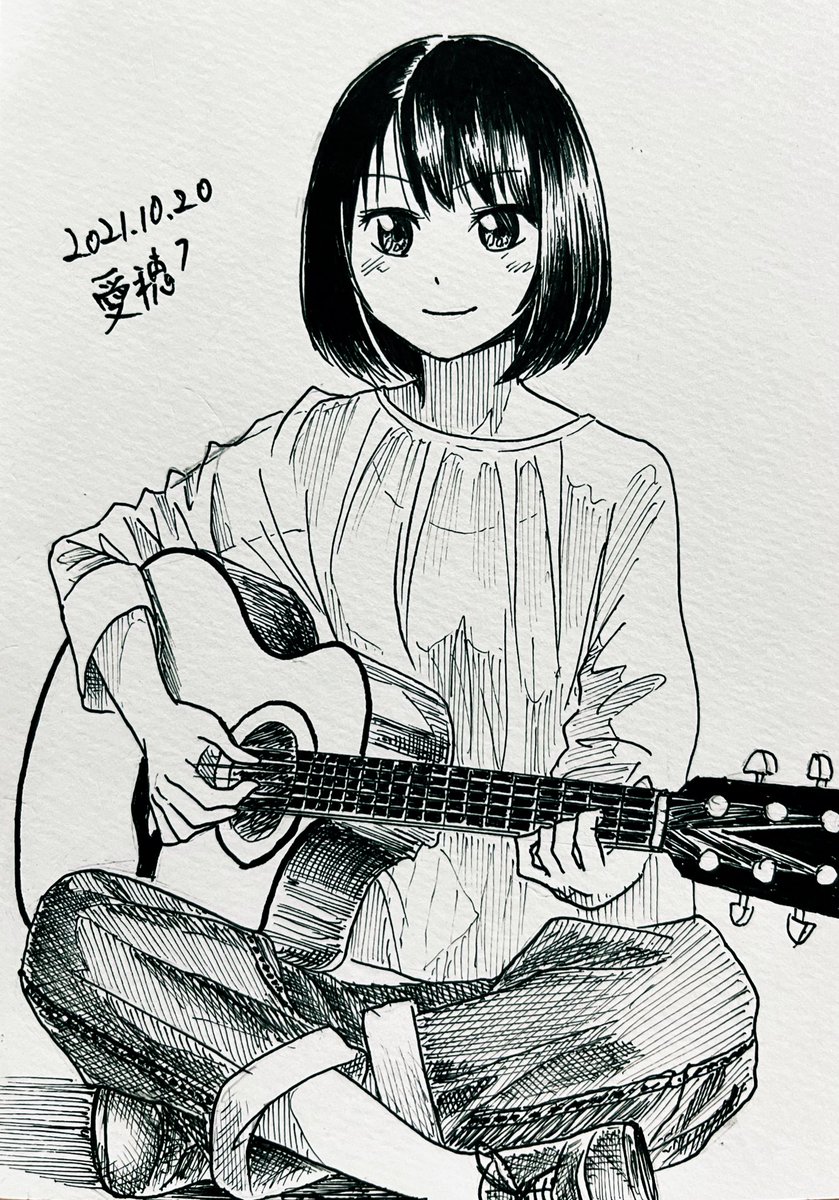 こんばんは🌙 線画でも出来ることは沢山あると実感しました。極めたい。 #愛穂の毎日投稿 22枚目 #イラスト #模写 #楽器 #イラスト好きな人と繋がりたい #絵描きさんと繫がりたい #秋の創作クラスタフォロー祭り #デニムを線で描きたい