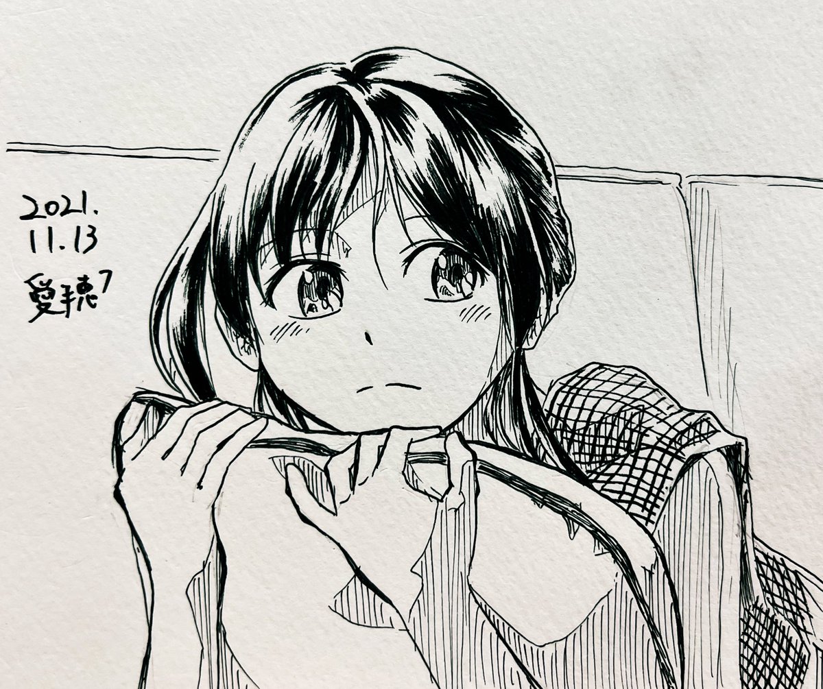 こんばんは🌙 クッション抱っこ娘 #愛穂の毎日投稿 43枚目 #イラスト #模写 #女の子 #イラスト好きな人と繋がりたい #絵描きさんと繋がりたい #秋の創作クラスタフォロー祭り #絵柄が好みって人にフォローされたい