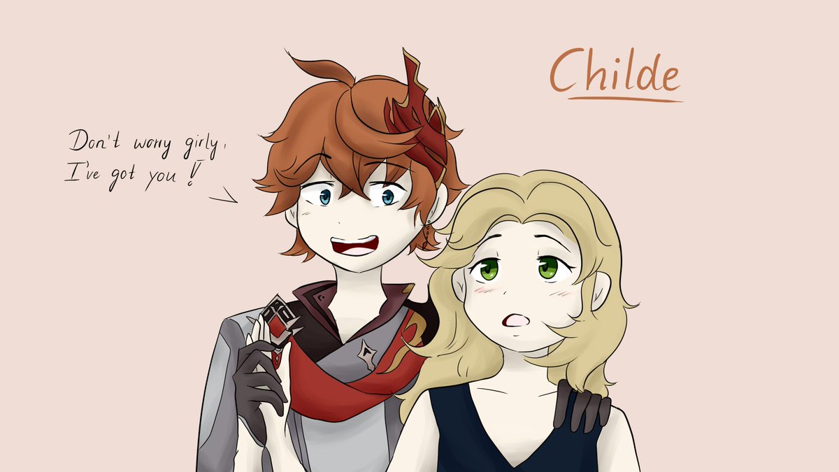 There you go~ Just let me enjoy drawing myself with my favorite characters.🦝 . . #GenshinImpact #genshinimpactfanart #childe #tartaglia #lovehim