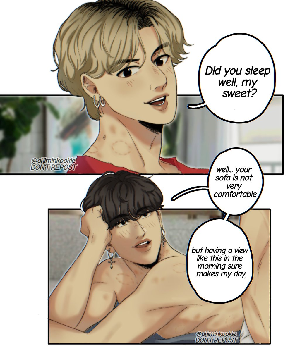 🐰 > friends with benefits = what happened the night before and why did jimin sleep on the couch? 🤔😏 #jikookfanart [more translations below ⬇️]