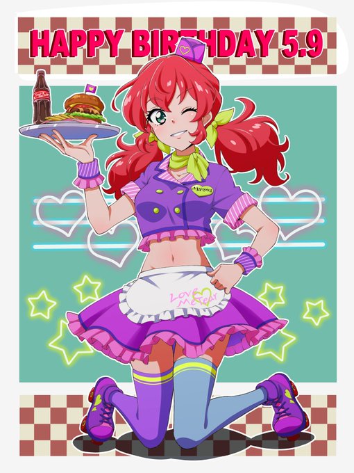 ミライさんお誕生日おめでとう! 唐突に似合いそうだなと思ったのでアメリカンダイナー風の衣装でお祝いです🍔🍟 ミライさんは難しい色柄物をオシャレに着こなすイメージがある✨ #aikatsu #アイカツフレンズ #明日香ミライ生誕祭2023