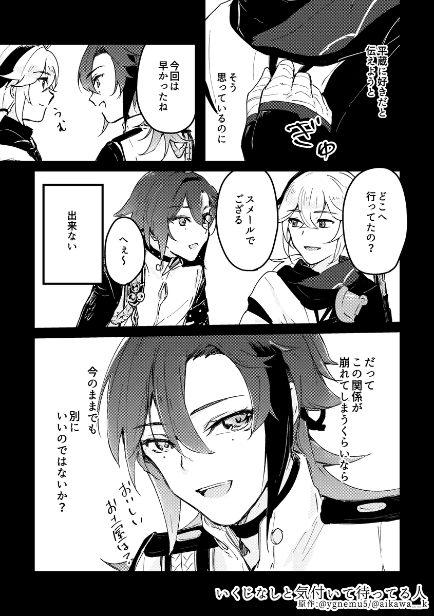 いくじなしと気付いて待ってる人(1/3) (原作:@ygnemu5 ) #kazuhei #万平 twitter.com/ygnemu5/status…
