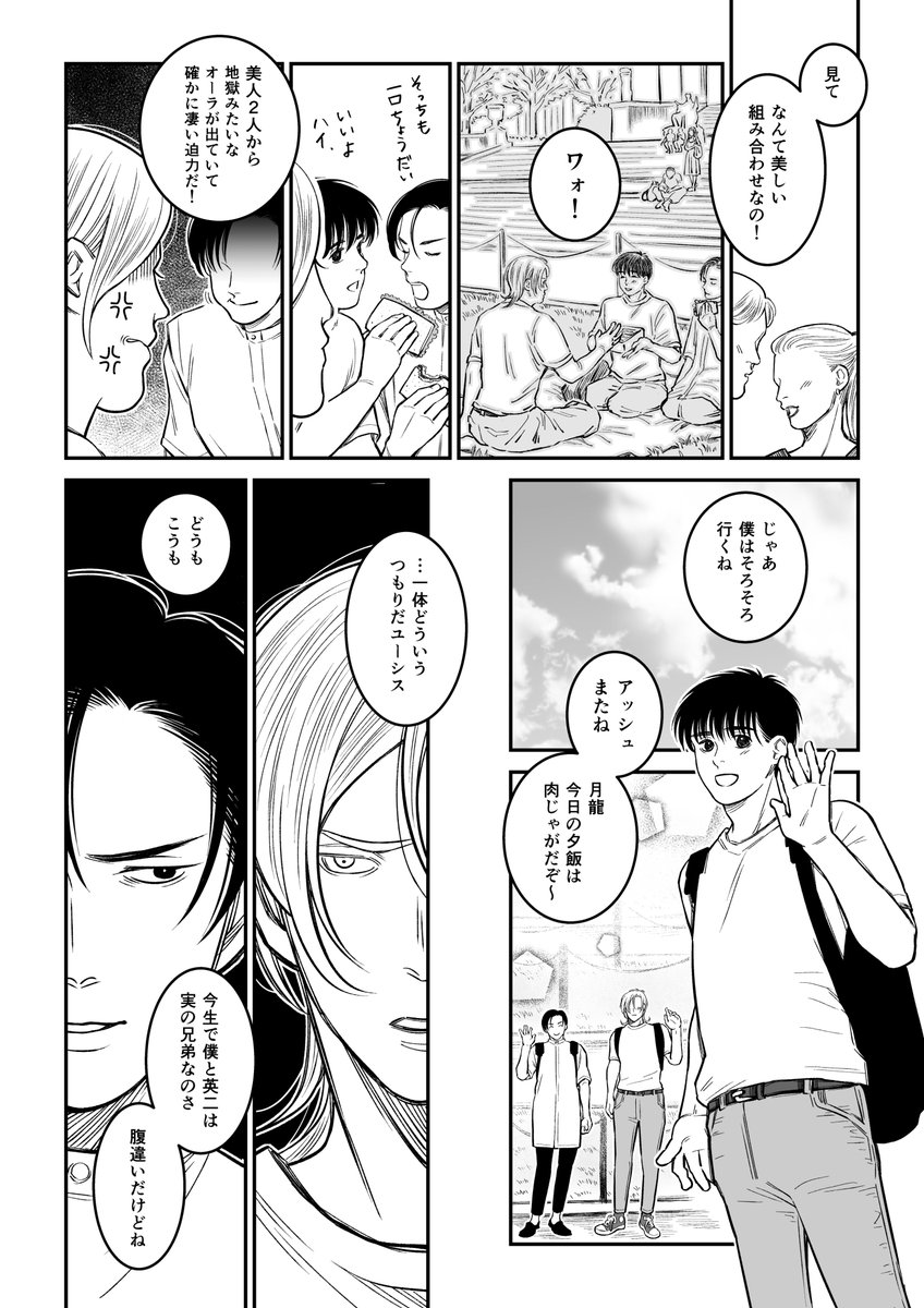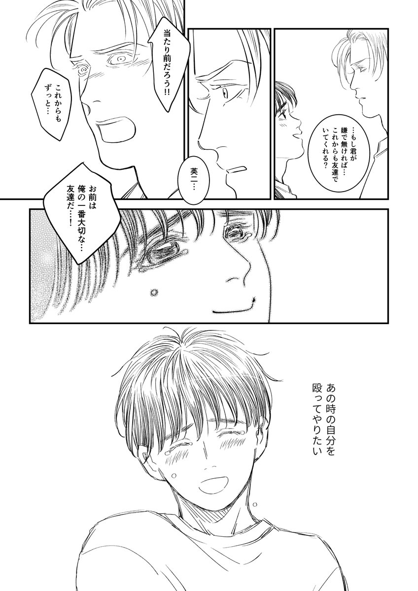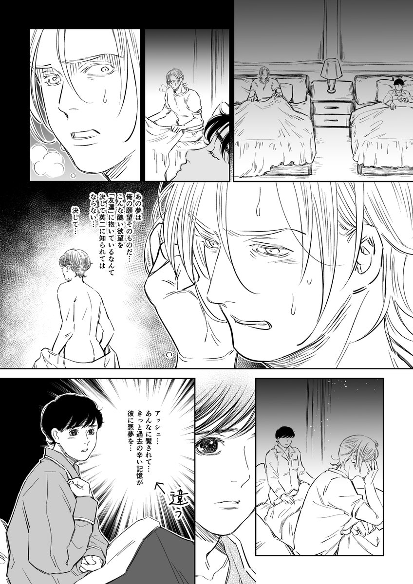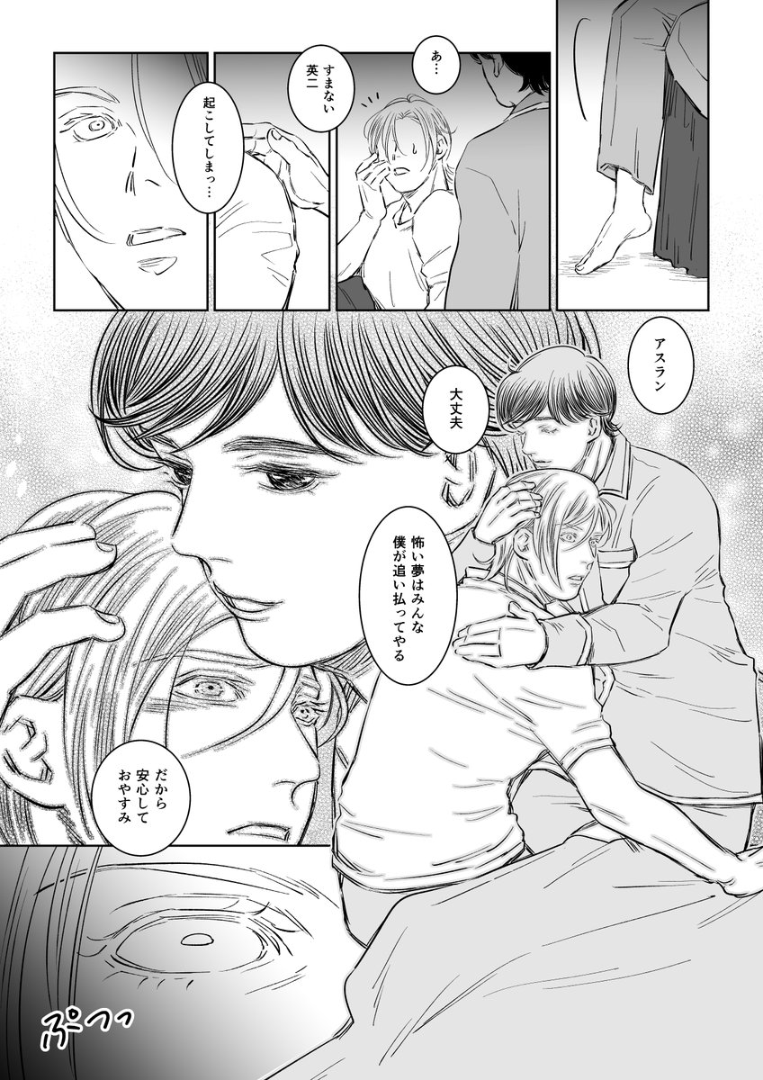 暗いな…?と思い放置していた🍌🐟漫画。 2頁で終わっても良さそうな暗さですが、pixivに全頁アップしました☺️ A←英からのシン英なので、キャプション必読✨ pixiv.net/artworks/93178…