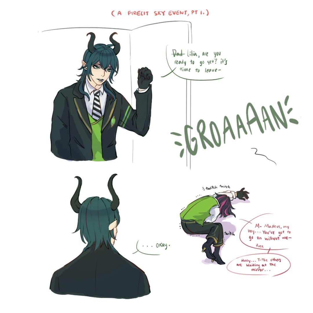 Jamil needs a break. Firelit Sky event, part 2. #twst #twstプラス #twst_NL #twsten #twstファンアート #kalimalasim #jamilviper #twistedwonderland