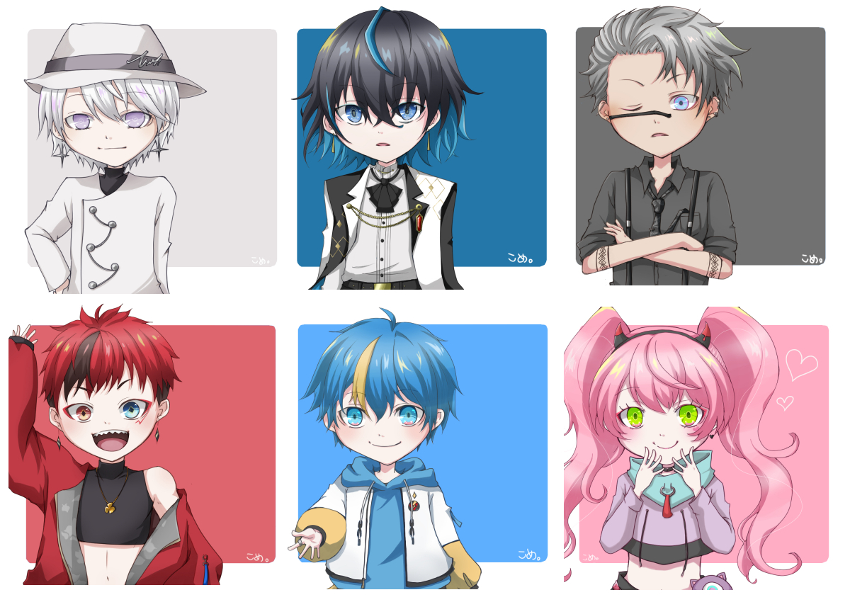 1人1人バラバラで描いたので統一感ないけどとりあえず6人描けたから合体させてみたよ~ #テクノロイド_FA #テクノロイド創作班