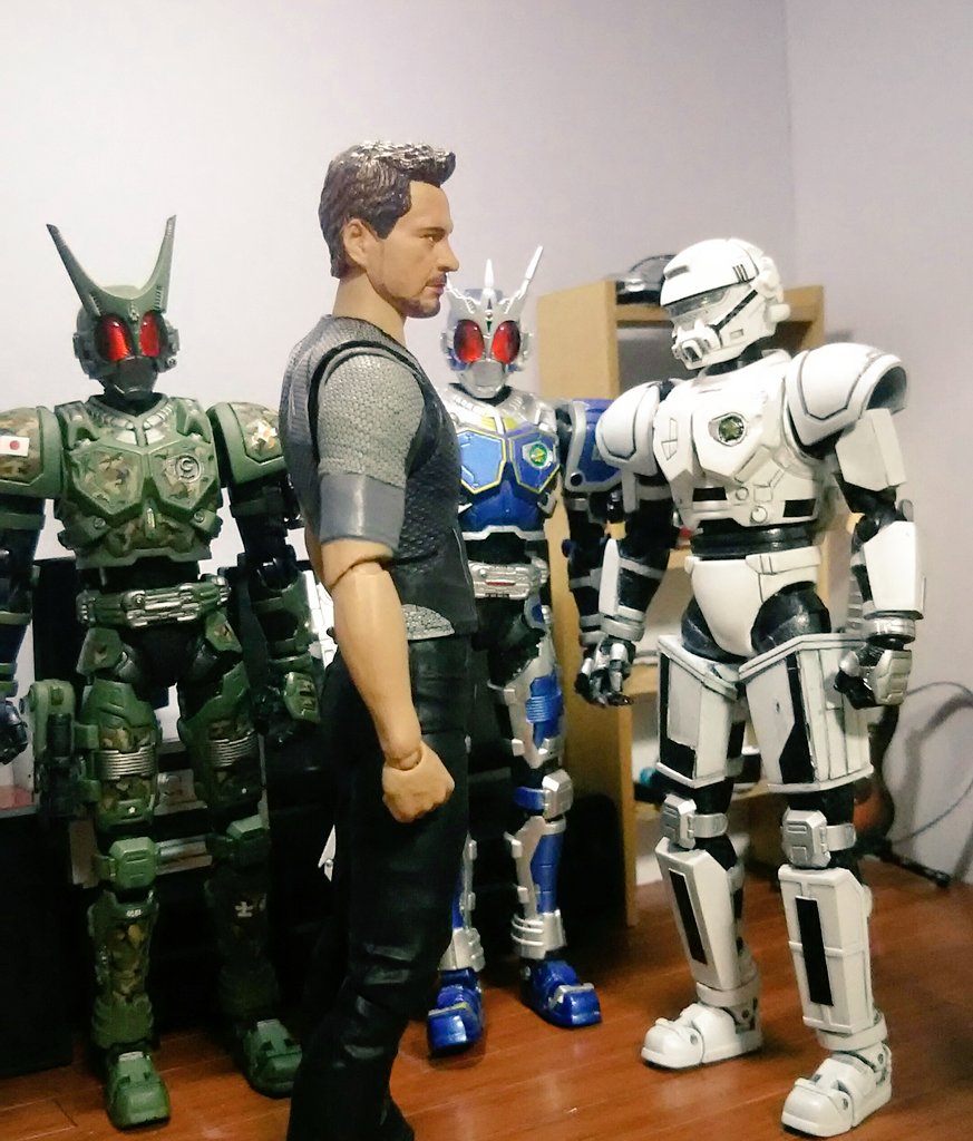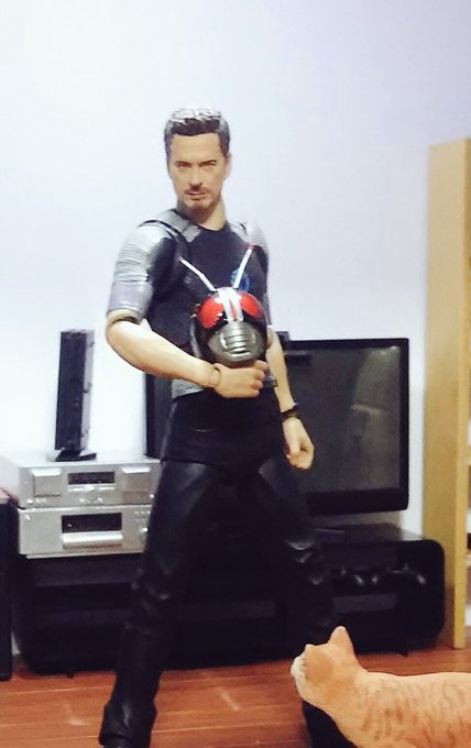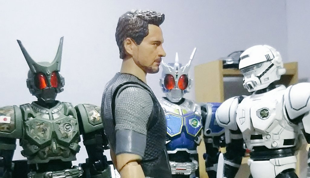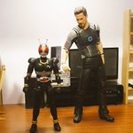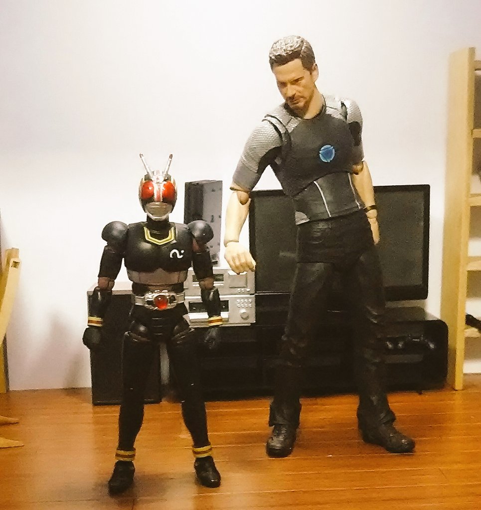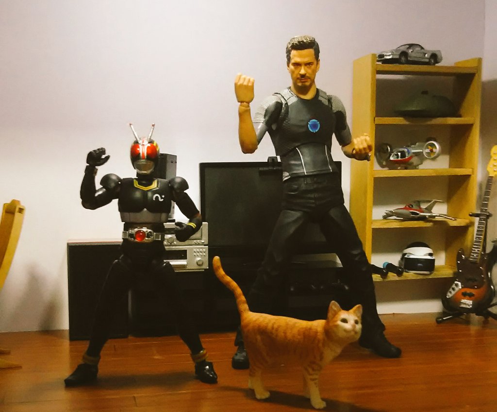 空想玩具レビューユーチューバートニー 「やぁ!こんばんわ!トニーの秘密基地にようこそ!」「今日の、コレクションはこれだ!1/2スケール仮面ライダーBlackだ!」「凄いディテールだ…。指も間接ごとに動くぞ!一緒のポーズで撮ろう!」 #空想玩具レビュー #アイアンマン #オモ写