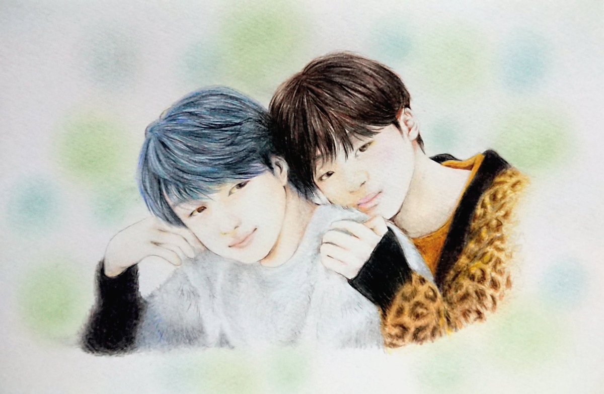 大好きな最年長🐢&最年少🐉コンビ❤ずーっと描きたかったこの時の二人をようやく描くことが出来て幸せ! #JUNON #RYUHEI #BEFIRST #BMSG #BEFIRSTファンアート #色鉛筆画 #アナログイラスト