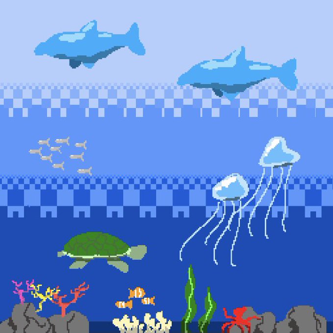 ドット絵の練習 次はもっと上手く描く #海 #ドット絵 #イラスト