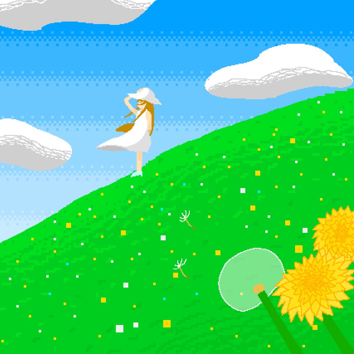 たんぽぽとワンピース #イラスト #illustration #ドット絵 #pixelart