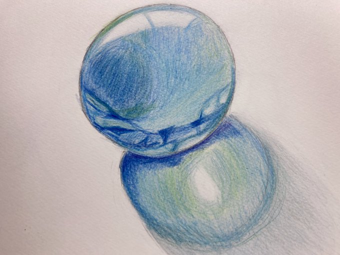 3 37 青いビー玉を描きました。円を描くのは難しい。 #イラスト #illustration #色鉛筆 #アナログイラスト 22/05/18 20:55
