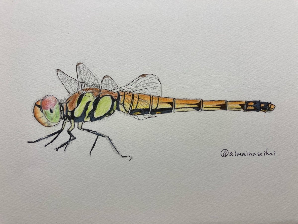 アキアカネ 今回は油性ペンも使ってみました #イラスト #色鉛筆画 #drawing