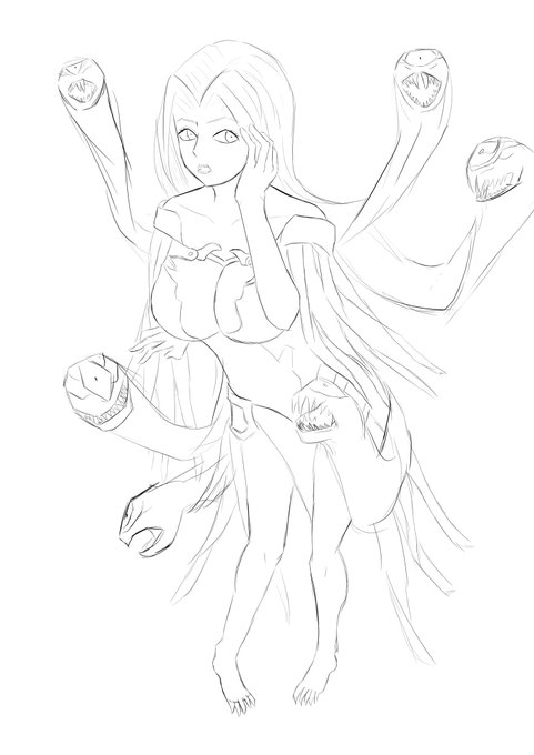 線画ばっか溜まってくんだけどwww #FGO のゴルゴーンとか塗らなきゃと思いつつ・・・ いちばん古い #Dグレ のエシなんて まだラフの段階だよやべぇ #イラスト好きな人と繋がりたい #絵描きさんと繋がりたい