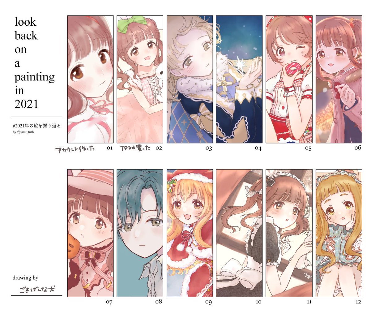 え〜ん 全然描いてないですが…このアカウントを動かしてまだ半年ほどの新参者ですが、こうやって絵を人に見ていただく場ができ自分にとって新しい1年となりました! 来年はもっと緒方智絵里を描いていきたいです あと絵柄を統一したいです よろしくお願いします #2021年の絵を振り返る