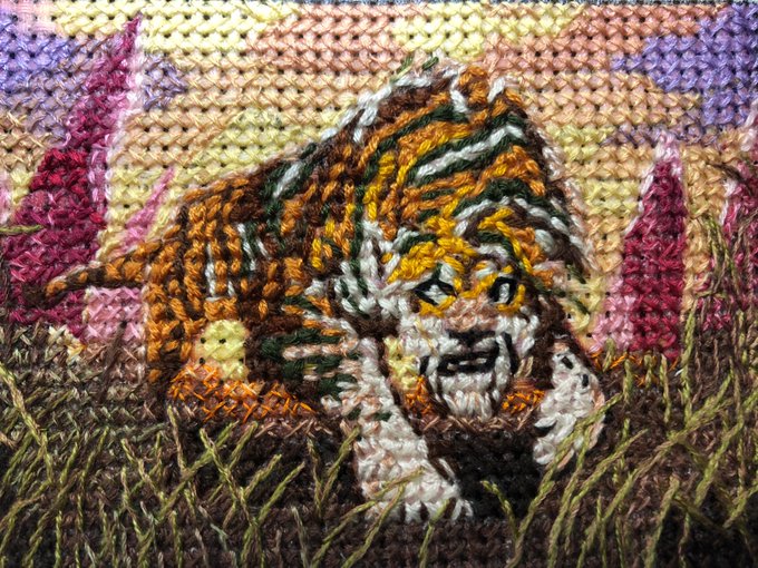 MTG刺繍新作完成ヽ(*^∇︎^*)ノ 来年の干支の虎にちなんで 「サヴァイの剣歯虎」 虎のカードを色々検索してみて 1番わかりやすいかなぁと(^ー^;) 年賀状に使えたらと若干色を 明るめに仕上げてます(*´꒳`*) 他にやりたい事あるんで年内は 刺繍お休み。次回作は新年から。 #mtgfanart #mtg