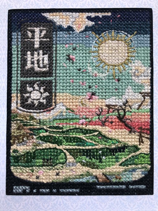 MTG刺しゅう新作ヽ(*^∇︎^*)ノ 神河の中で1番好きなカード! 浮世絵土地の平地 ちょっと小さめ11cm×13.5cm 作業約40時間 使用糸50色以上 これは日頃お世話になってる方への贈り物になるのでもう少し大きなサイズのアートカード版をこの後作る予定 #mtgneon #mtgfanart #embroidery