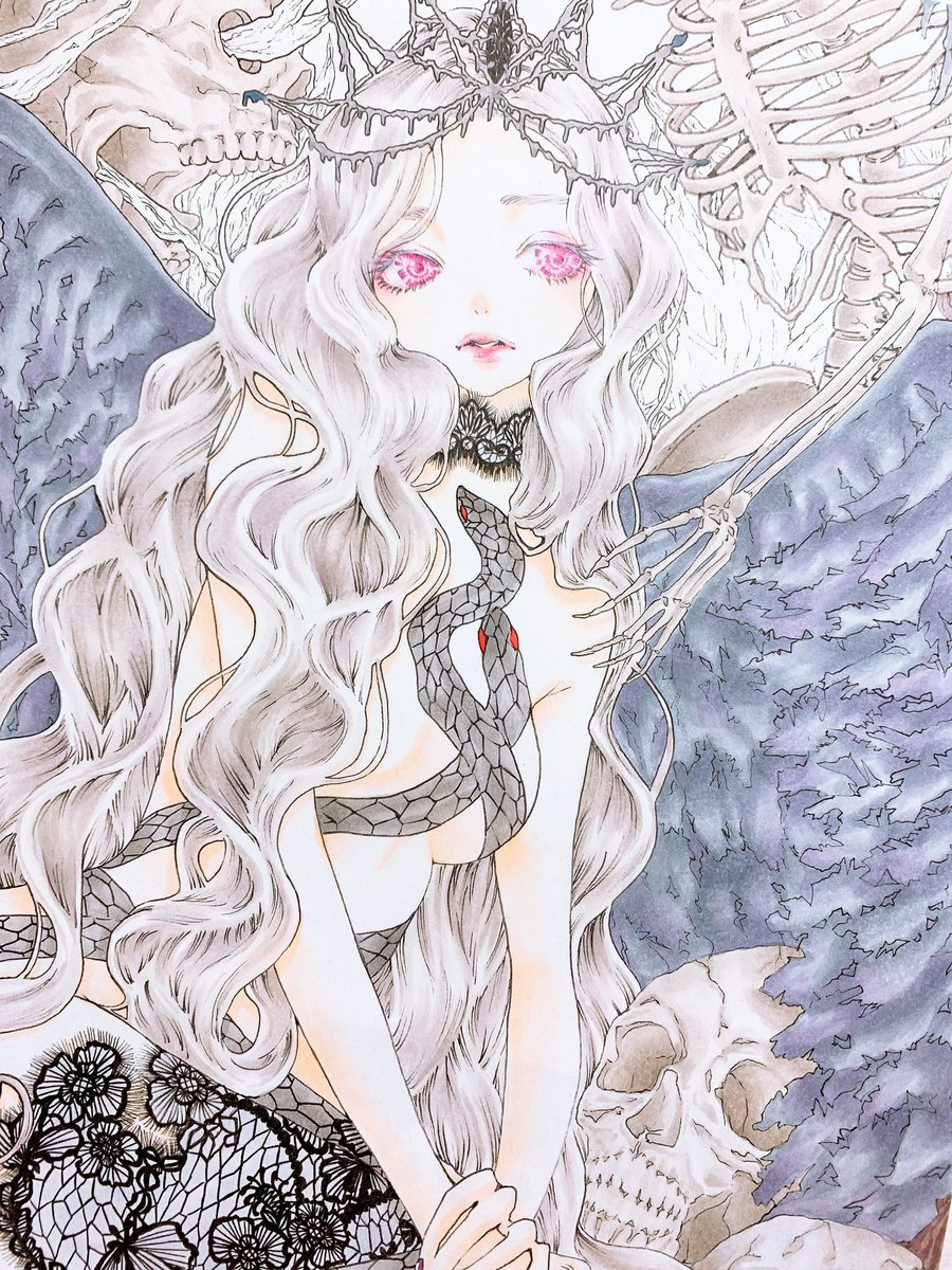 着色中 オブアートの練習時間が長すぎて全然進んでない… #illustration #オリジナルイラスト #アナログイラスト #ヘル #北欧神話