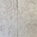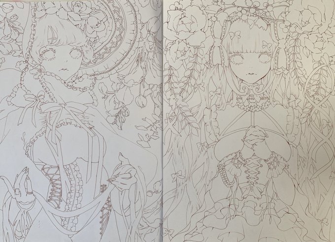 遅ればせながら明けましておめでとうございます🙇♀️ 2枚線画完成 #イラスト好きさんと繋がりたい #絵描きさんと繋がりたい #線画 #ロリータ #アナログイラスト
