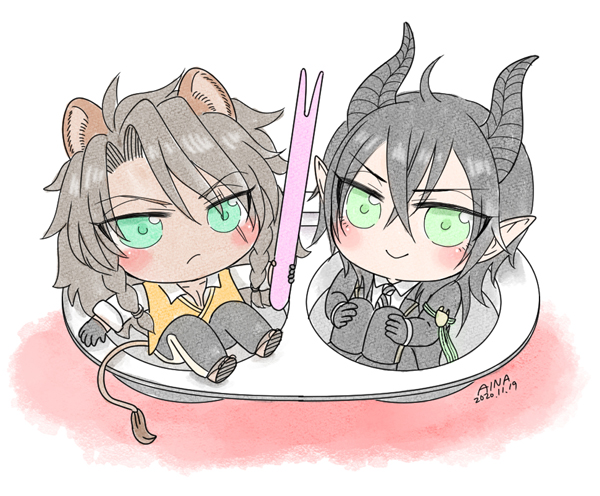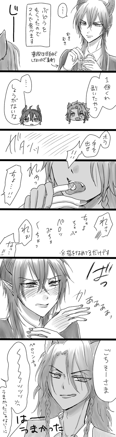 「実り」の秋で、ぶどうを食べる二人😀 1コマ目の🦁は「指がエロい…」と思いながら🐲を見ています🙂 線画までが1時間で塗り入れて30分オーバーです、すみません😭 #レオマレ版ワンドロワンライ