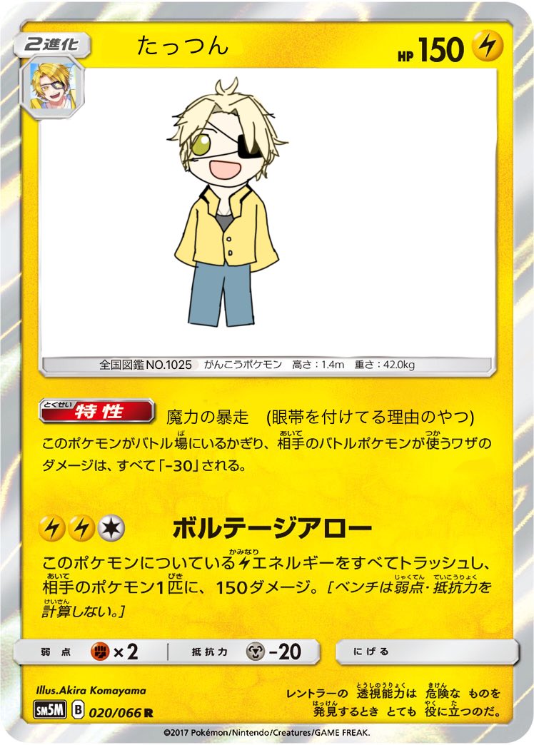 1 5 からぴちたっつんさんのポケモンカード(?)を作りました。 高評価だったら他のポケモンカード(?)も作ってみます。 #からぴち絵描きさんと繋がりたい #からぴち 22/04/02 20:28