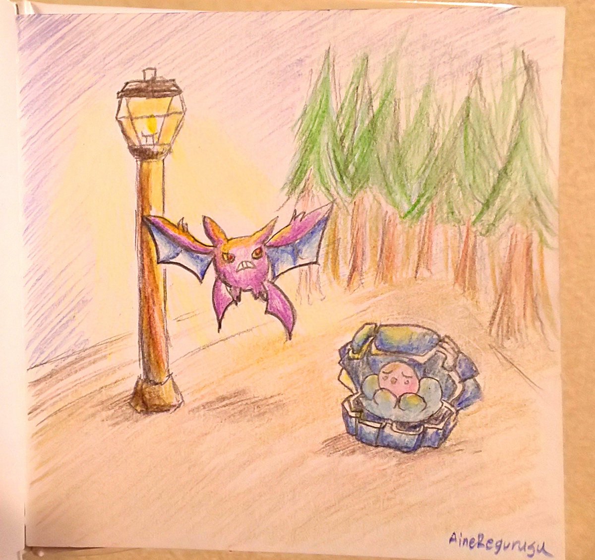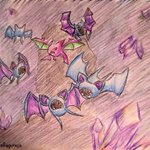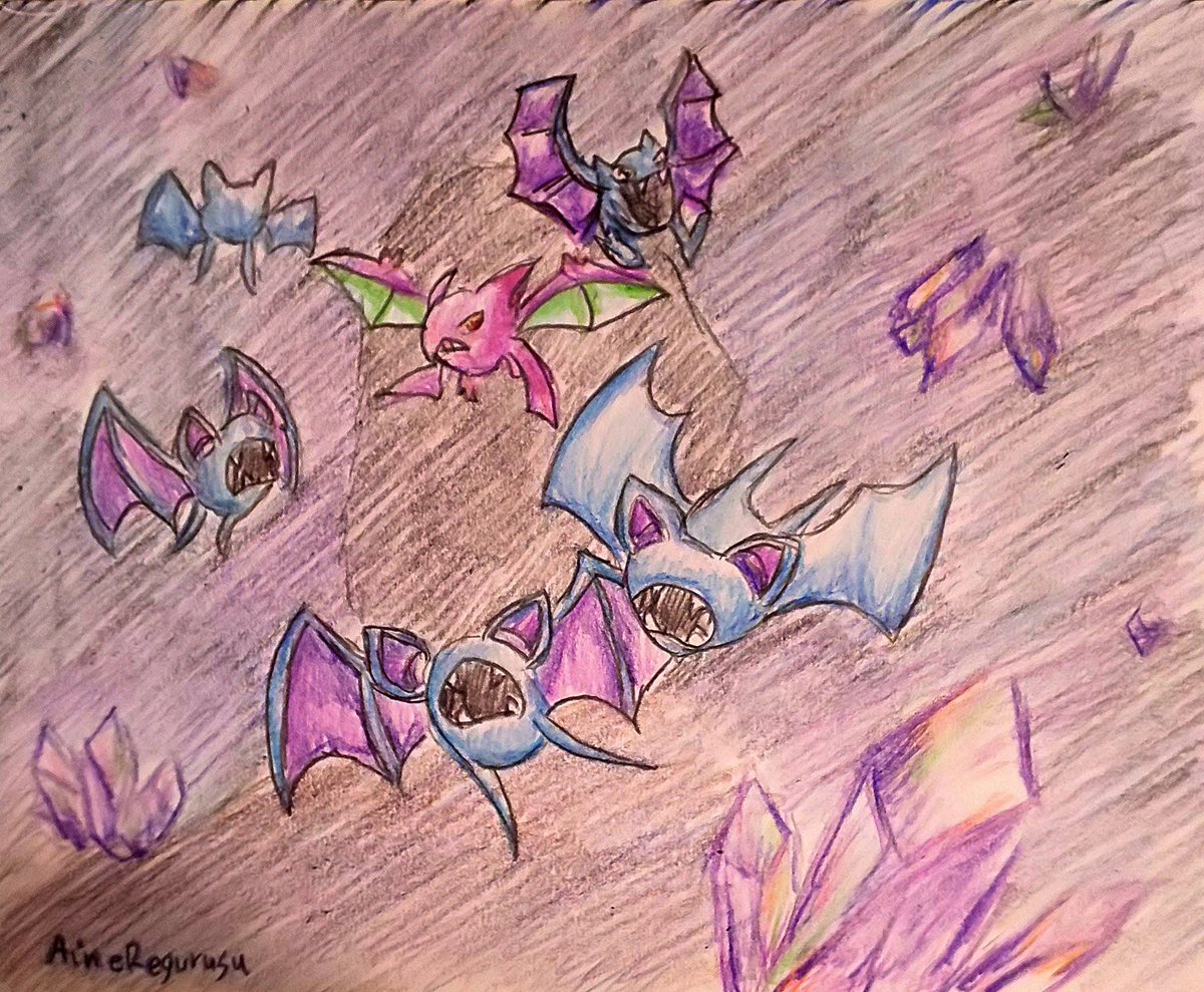 【アメジスト】 紫色の洞窟へようこそ。 今回はズバットで参加させて頂きます。企画概要欄に他のポケモンと一緒に描いても大丈夫との事だったので、クロバットやゴルバットも添えてみました。 #ポケモン版深夜の真剣お絵描き60分一本勝負