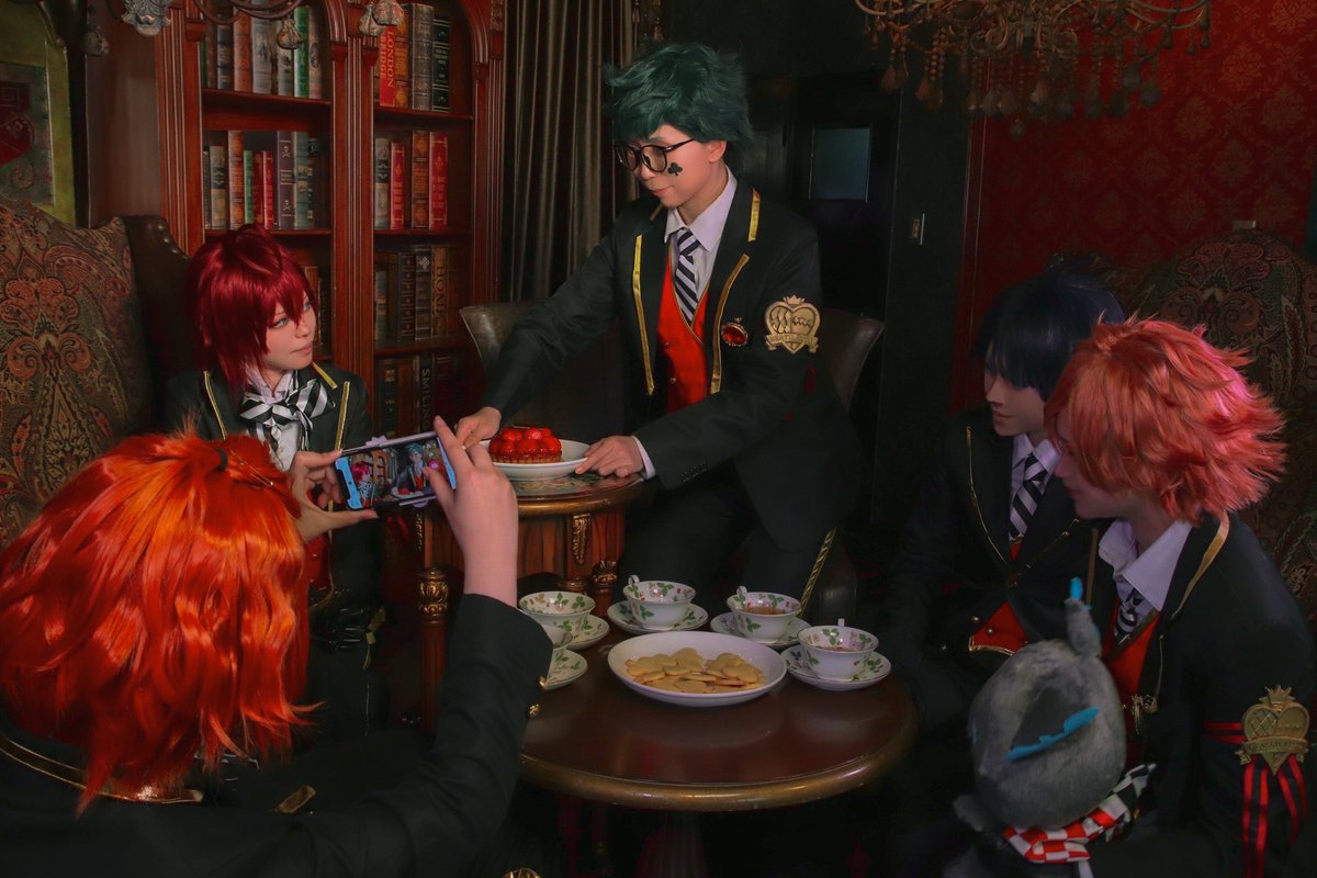 ※コス写※ twst/ ❤️寮 Perfect Tea Time ❤️: ふぃおさん(@feuio_fiore) ♠️: にふぁさん(@nifapippi) ♣️: 律さん(@HANABIx61) ♦️: 村8さん(@murahachi888) 🌹: 哀乃 📸: 立松さん(@_sabamisomaple_)