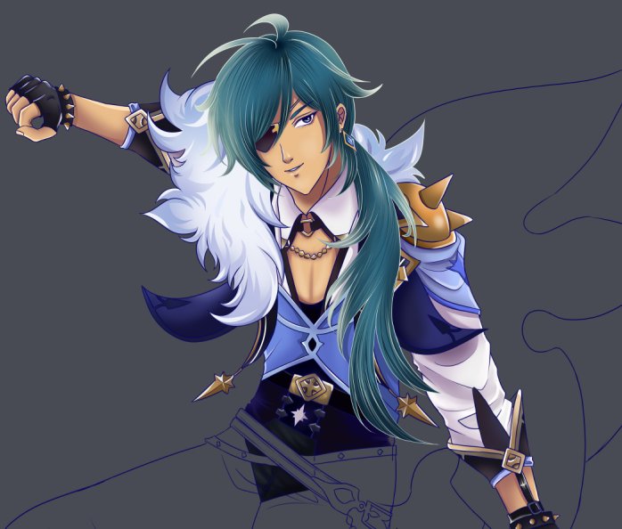 now to final process which is design #wip #workinprogress #genshin_impact #genshinimpactfanart #genshinimpact #fanart #diluc #dilucgenshinimpact
