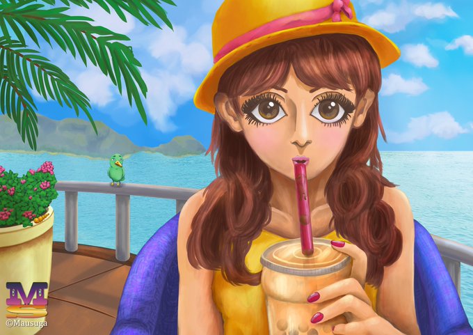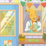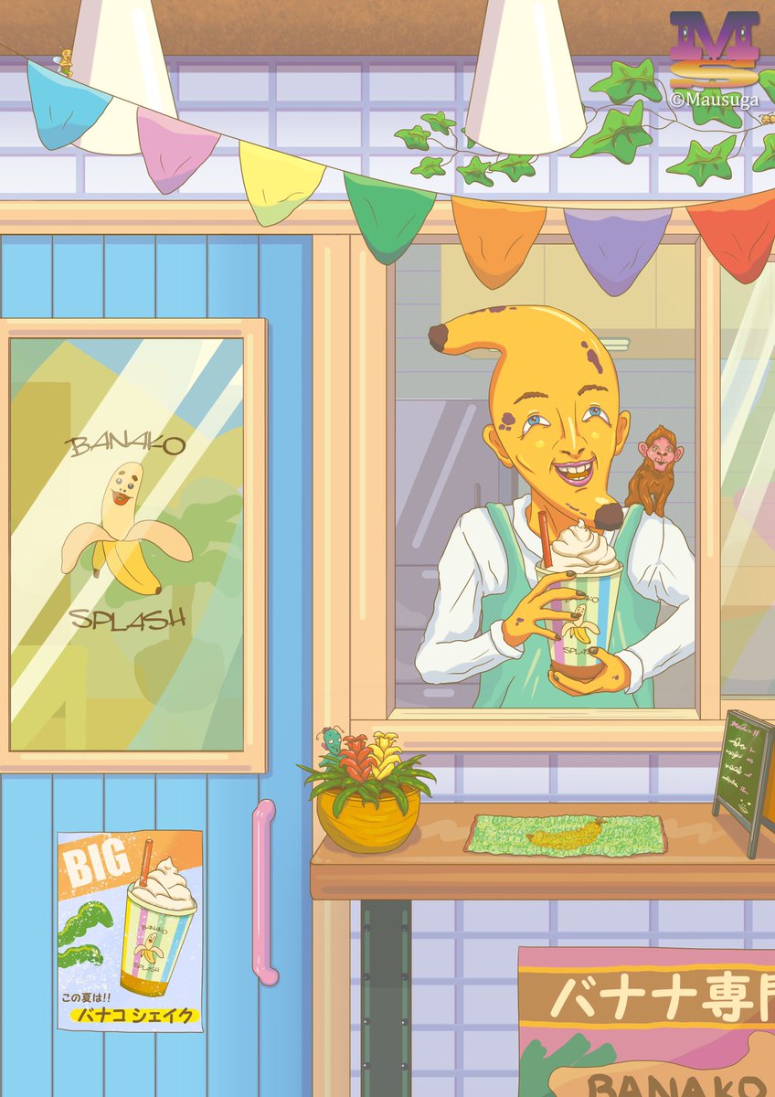 【新作イラスト公開】 『CAFE -BANAKO SPLASH-』 バーナ・トロピカルが営業するバナナ料理専門カフェ #イラスト #アート #デジタルイラスト #キャラクターデザイン #新キャラクター #バナナ #バナナシェイク #バナナジュース #テイクアウト #イラスト好きな人と繋がりたい #絵描きさんと繋がたい