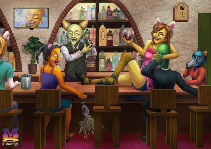 【新作イラスト公開】 🌟『BAR -KEMONO-』🌟 お客様がどんだけうるさく騒いでも何をしても決して怒ったり追い出したりしない、優しいマスターが営業しているバー。 #デジタルイラスト #厚塗り #バーテンダー #マスター #飲み屋 #居酒屋 #絵描きさんと繋がりたい #イラスト好きな人と繋がりたい