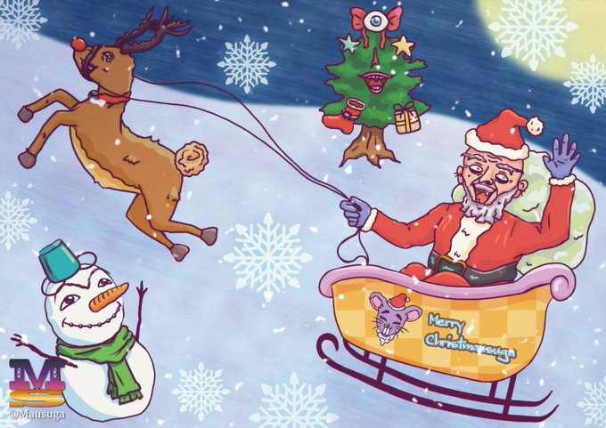 【新作イラスト公開】約3ヶ月ぶりとなる完全新作、『メリークリスまうすが』 クリスマスを描いた作品。まうすがらしく少しキモいけど憎めないキャラクター達が登場しております #デジタルイラスト #デジタルアート #クリスマスイラスト #サンタさん #トナカイ #雪だるま #絵描きさんと繫がりたい