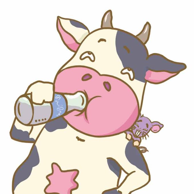 ちなみにこちらのキャラは「ギュウット・ウッシッシ」といいます。 肩にまうすがのマスコットキャラクター、「マウスガ」が居ることにお気づきですか? #年賀状 #デジタルイラスト #新年のご挨拶 #牛 #丑年イラスト #絵描きさんと繋がりたい #牛乳を飲むイラスト #腰に手を当てるポーズ