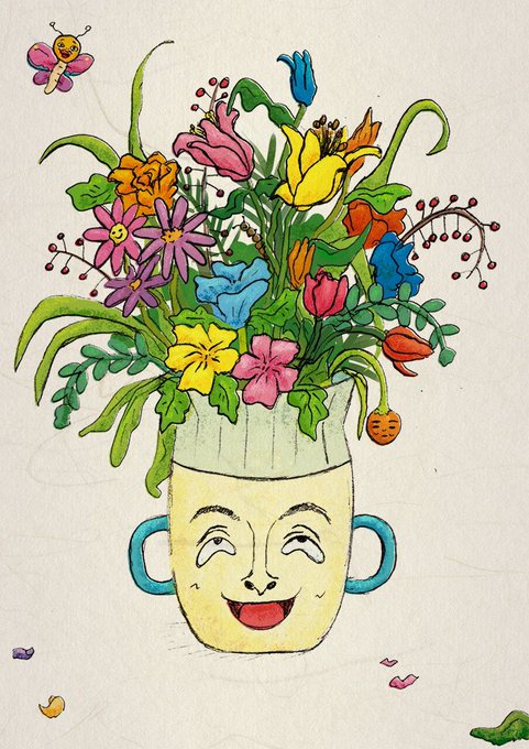 新イラスト 『Put flowers in M's vase』 線画はアナログで描き、PCに取り込んでデジタルで色を着けました。 #イラスト #イラストレーション #アート #デザイン #デジタルイラスト #アナログ風イラスト #花瓶 #花 #生花 #絵描きさんと繋がりたい #イラスト好きな人と繋がりたい #illustration #art