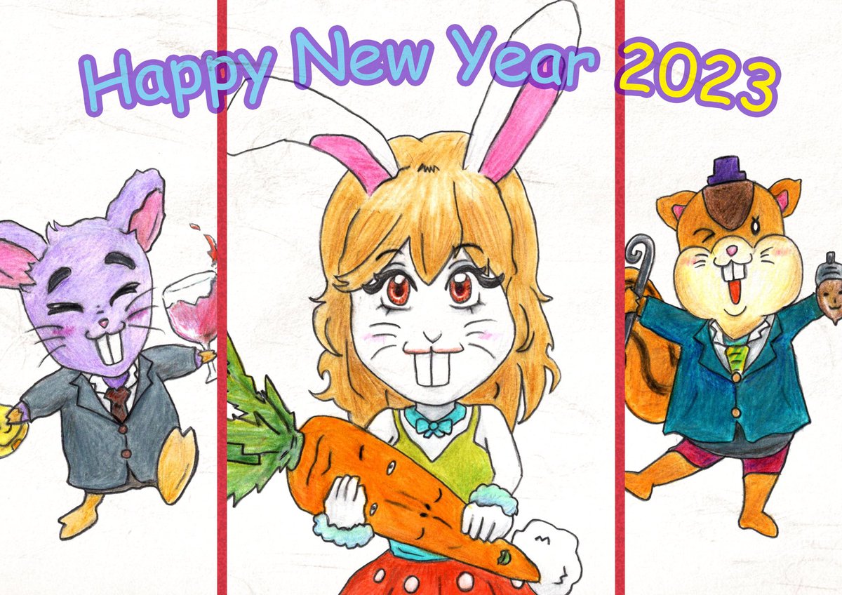 2023年、今年もよろしく!! 今年はこの出っ歯3匹組で新年のご挨拶をいたします。 #イラスト #アート #絵 #絵描きさんと繋がりたい #イラスト好きな人と繋がりたい #絵描きフォロバ100 #有名になりたい #1mmでもいいなと思ったらいいね #年賀状 #正月イラスト #illustration #art
