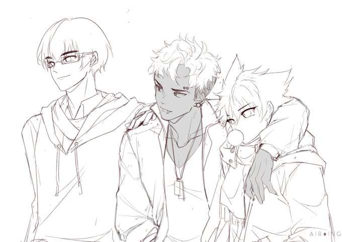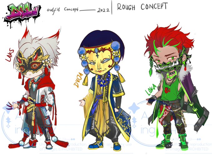 #rhy_DLL YO, rough concept of my OC's trio DLL's battle outfits ! oret-oret di chibi dulu, nanti stlh fix, baru bikin fullbody non-chibi nya ikzzzzzzzz -all designs are mine #artidn #ArtistOnTwitter #arttwt #artmoots #originalcharacter #OC