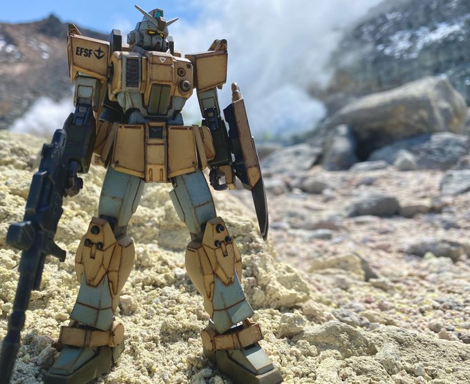 硫黄山の噴気を背景に撮影 #ガンプラ
