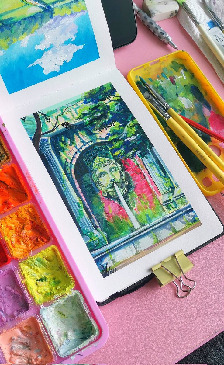 The chickens 'tried' to help me paint today... by flying into my gouache palette multiple times. #SpiritedAway #ghibliredraw #StudioGhibli #miyahimi #ArtistofMalaysia @twt_seni