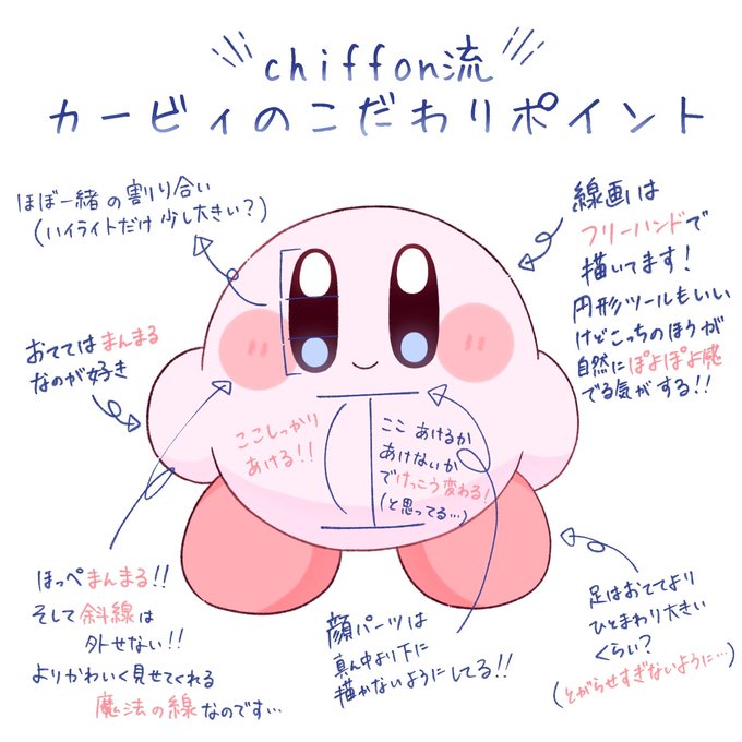 「カービィ描くときどんなところにこだわっていますか」という質問をいただいたので、自己流カービィのこだわりポイント載せときます!(•'-'•)و #カービィイラスト