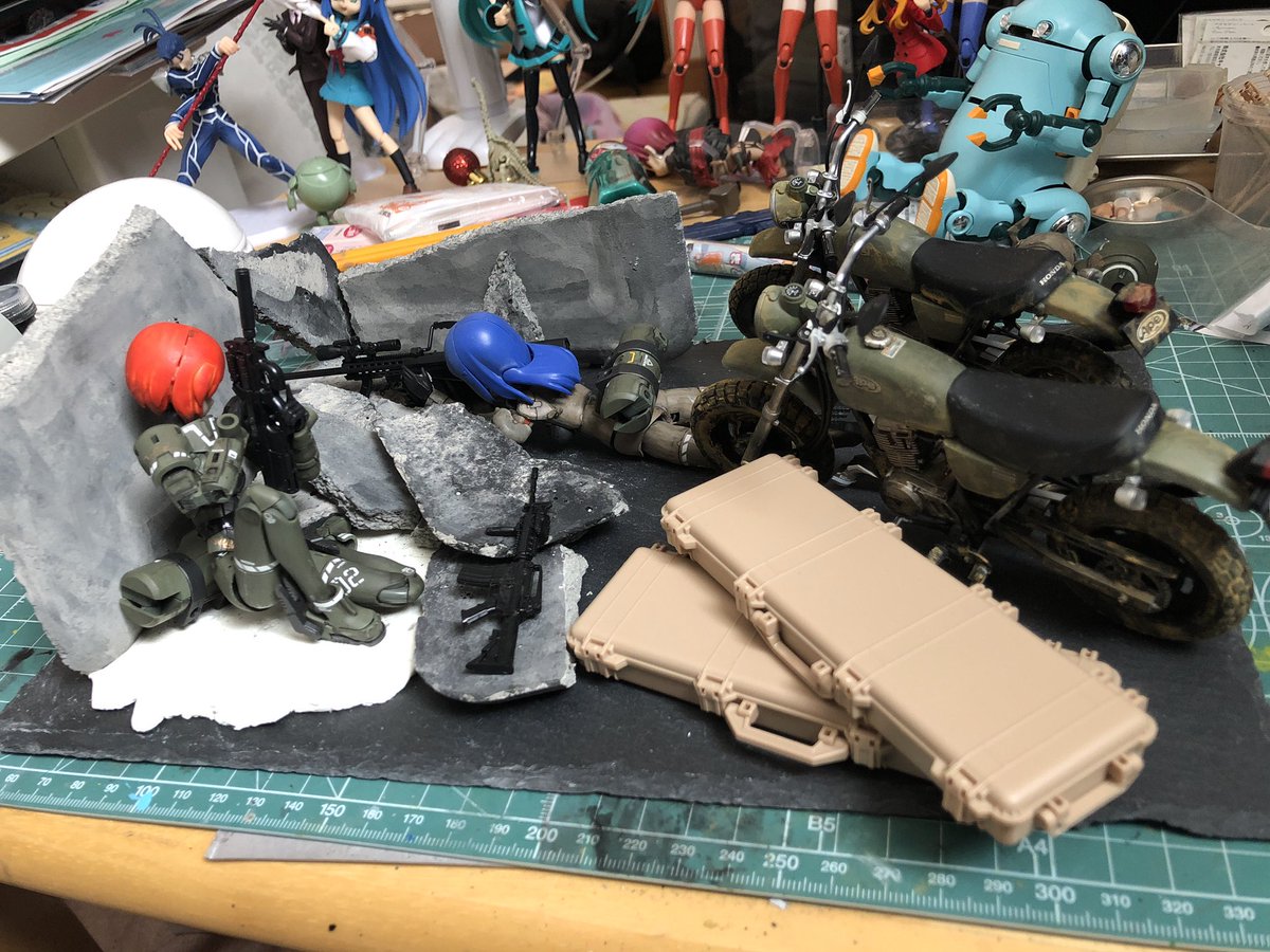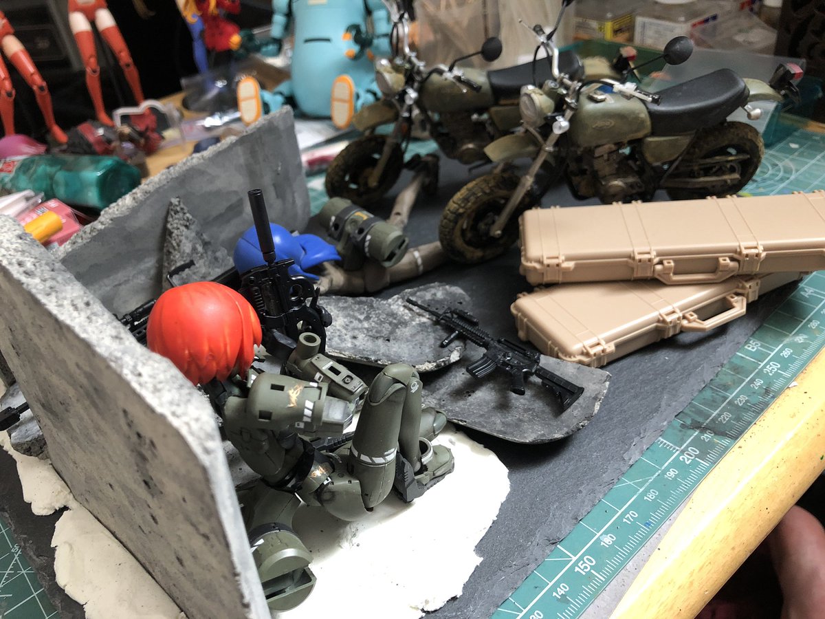一旦崩すと元に戻らない罠。 あと1回は崩さないとだからどうしたもんかね。都度都度の方がいいかな?ちゃんと考えなきゃかなー。 あ、ヘルメット置いてみました #メガミデバイス