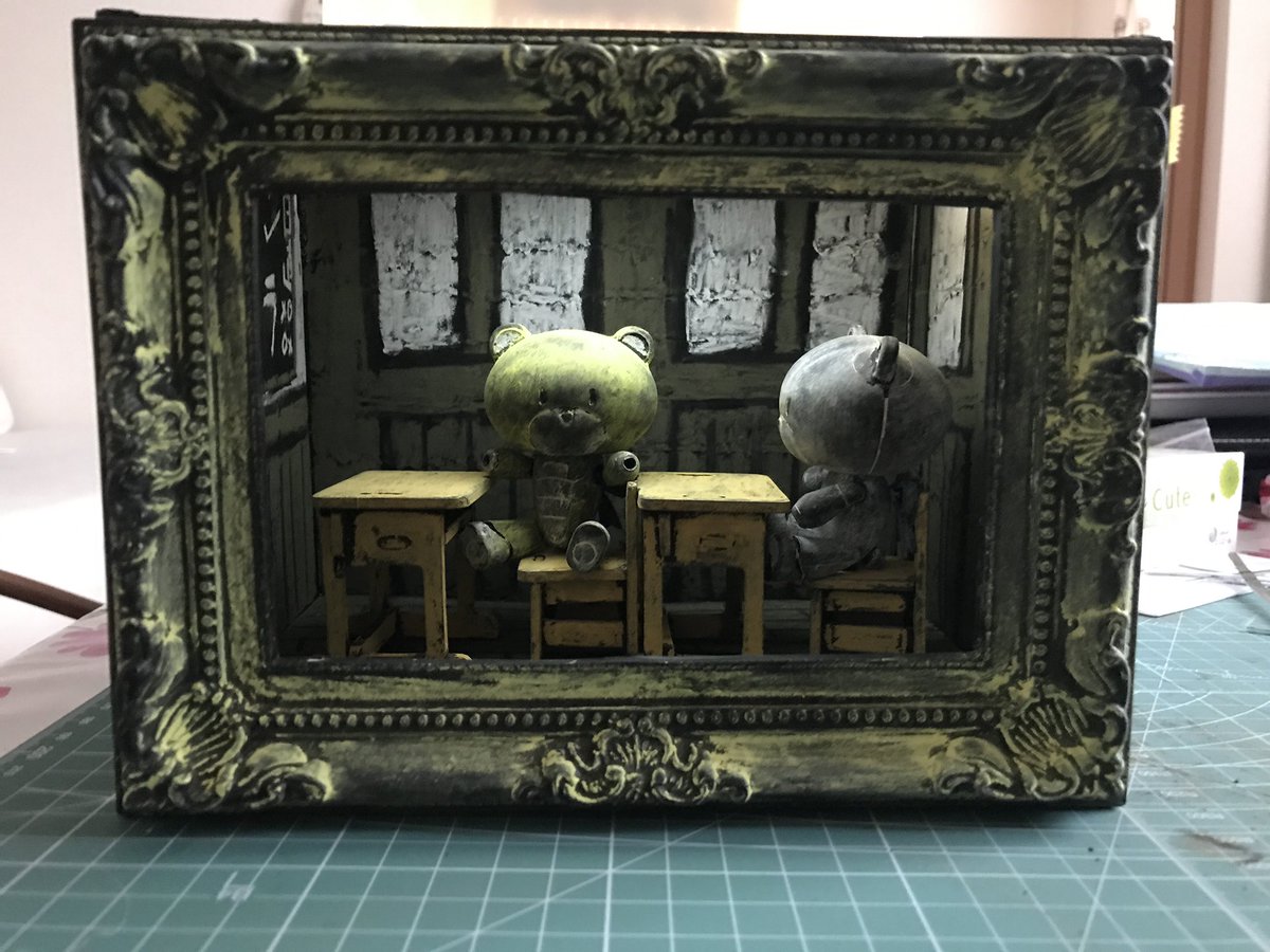 4 28 #自分の模型を1分で説明する劇場 黒板塗料で黒板化→チョークにて塗装 #チョーク塗装 #黒板ダムシリーズ #絵画ッガイシリーズ 18/12/21 22:02