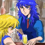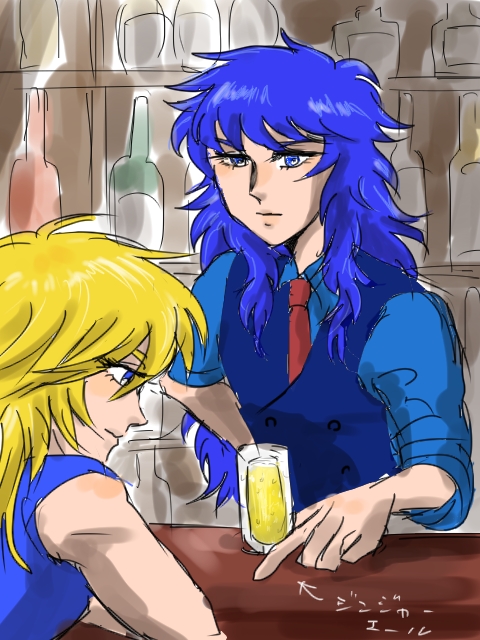 楽しげなタグ描かせていただきました…! 氷河が遊びに来ちゃったけど未成年だからジンジャーエール出されてます。 #BAR聖域 #バーテンミロ