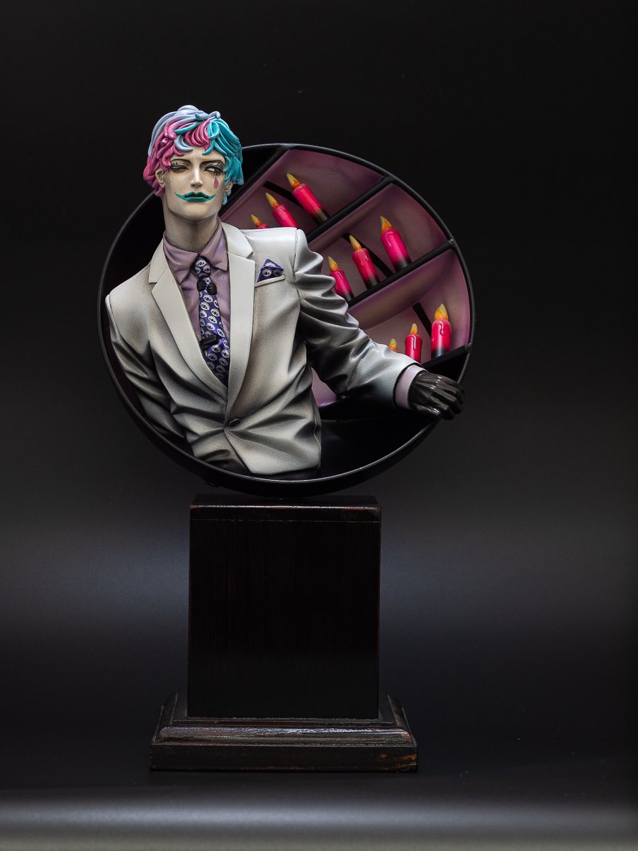 全体と表情アップなど。 そばかすは絶対忘れないで!!と騒いでメイクの下にしっかり入れてもらいました。 ネクタイはシルバーの特色デカールで目玉一つ一つ貼っていただきました。 #ジョー設展