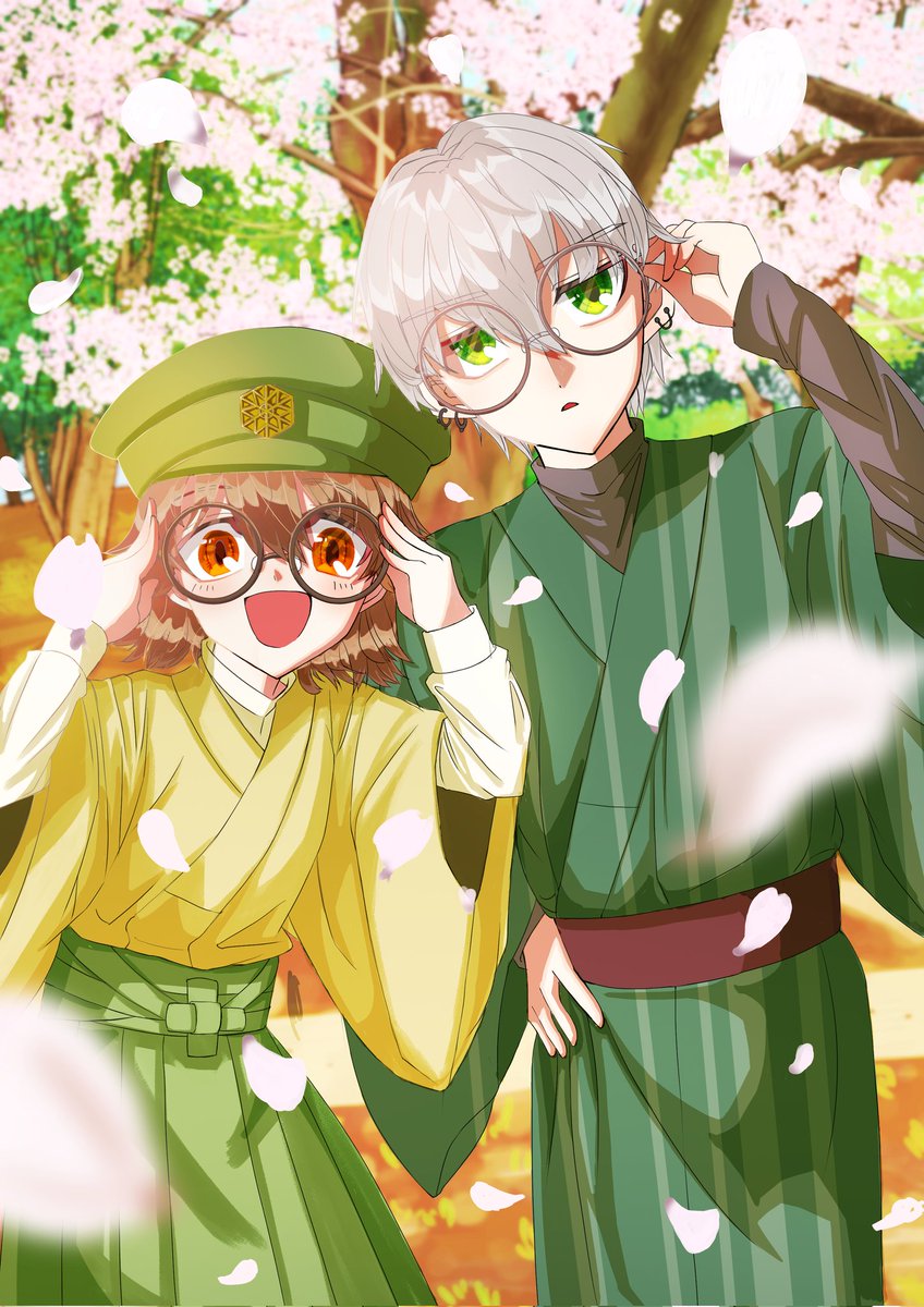 あこちゃん(@Ako0508AAA)のオリジナルキャラクター「緑くん」(右)と、私のオリジナルキャラクター「満天ちゃん」(左)の2人を描きました! 二人とも丸メガネで可愛い😊 #illustration #art #絵柄が好みっていう人にフォローされたい #イラスト好きな人と繋がりたい