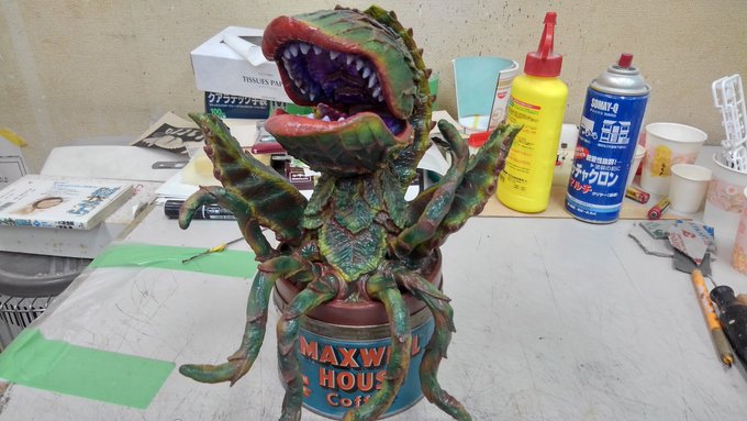 12 37 マーミット製の非常にキュートなグリーンのワルが届きました! ここは是非マックスウェルコーヒーの缶に入れて、よりシーモア気分に浸りたいところですが微妙に入らないのでソフビの鉢を切って入れるか悩み中...。 20/07/21 21:25