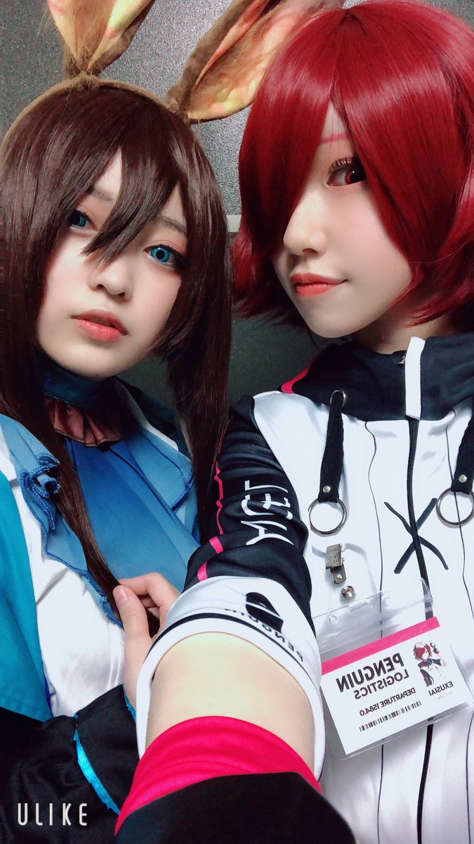 (コスプレしてます!!!!!) 夜は暇だったので!メイク会しました! 今回はロドスのボスも一緒です! アーミヤ→まなぴちゃん @_mana_pi_