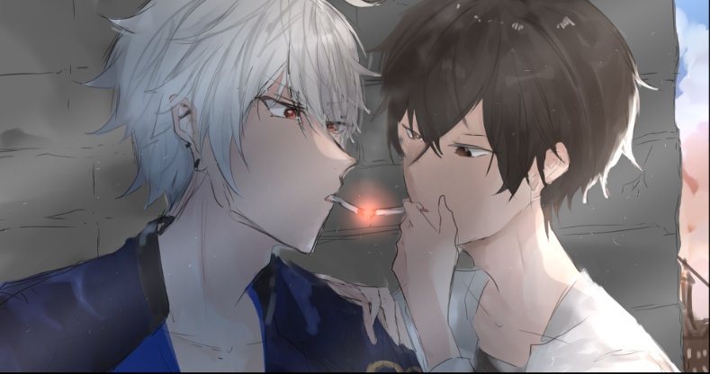 "Aniki, need a light?" A little cigarette after a tiring work until morning sounds nice, right? Art by @.Maoriryuuji #hpmiプラス 🐴🕊️ #yumelokalgallery