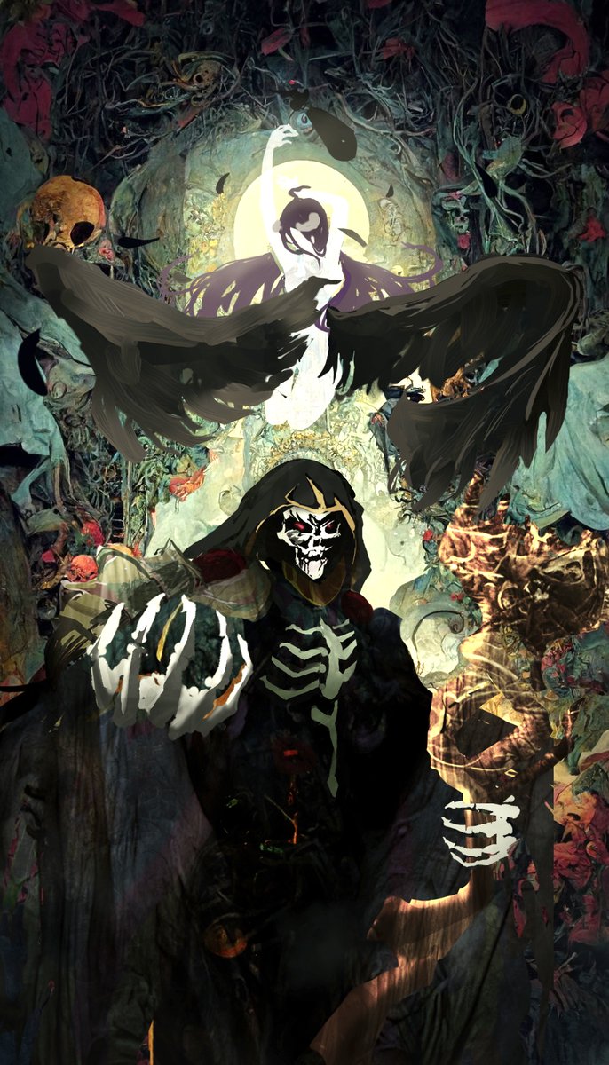 AIの世界観を崩さないように絵柄を調和してみせるるるる… アインズ様とアルベドのラフです🌸 果たしてアニメが終わる前に描き終えるんでしょうか(笑) 背景のみAI AI提供素材先H-283(@OfHenmi )さん #イラスト #絵柄が好みっていう人にフォローされたい