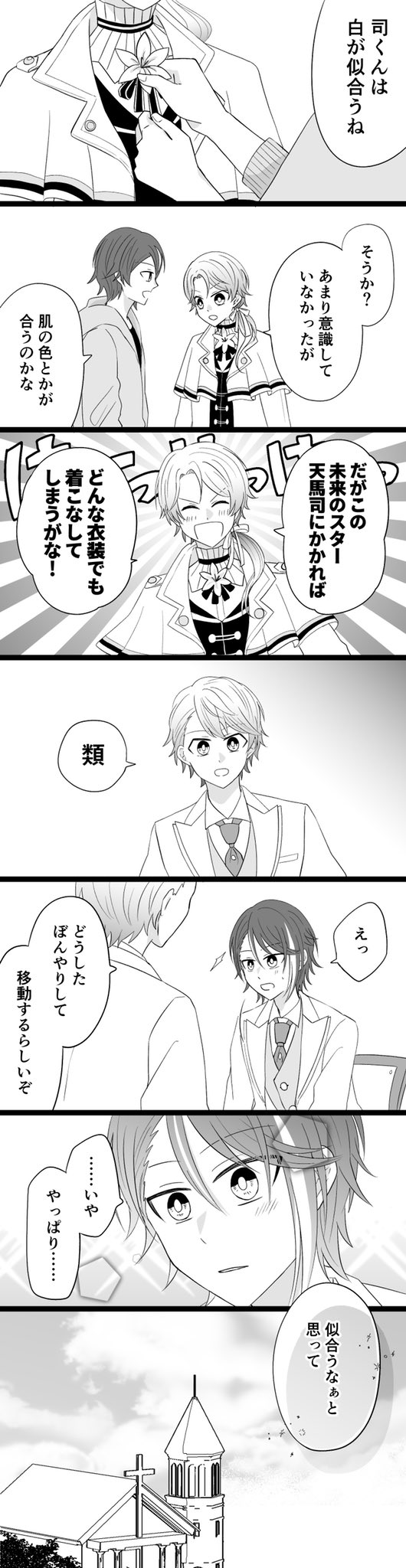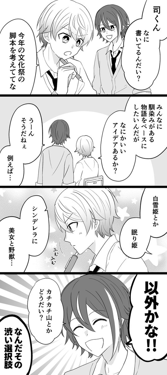 【新刊サンプル】(1/2) 7/23 類司オンリー 「巡るいつかのSTAGE!」にて頒布予定 モブが類司は付き合ってるか否かを議論するギャグマンガです。 東3-ハ25a (出席番号いちばん) A5 / 24P / 全年齢 / 300円