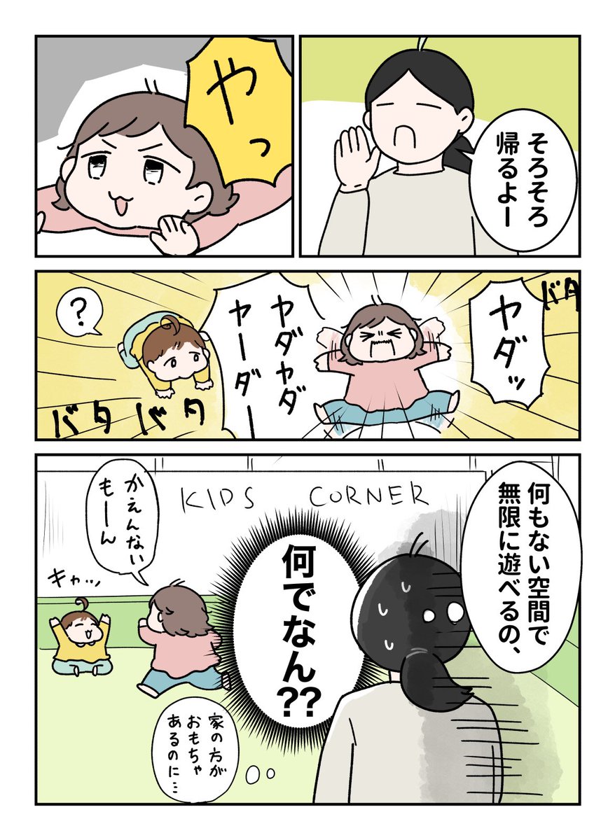 コロナでキッズコーナーのおもちゃ軒並み撤去されたよねぇ。戻るといいなぁ〜 #育児漫画 #やわらか育児