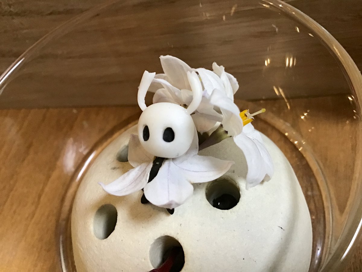 Tiny Flower Wanderer #hollowknightfanart #HollowKnight ついでに魔が差して放浪者さんも作ってみました。 自分で作っておきながらアレですが、これはかわいいが過ぎるのでは。