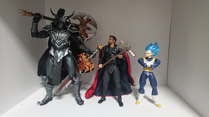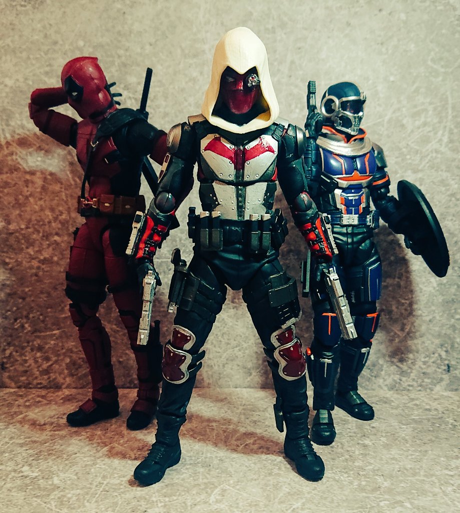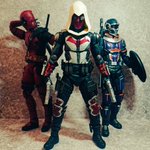Seven of the SAMURAI 左から #傾奇者デッドプール #ヌーブ・サイボット #無法者ウルヴァリン #アーマード・ロスト・プレデター #ロロノア・ゾロ 下段 #邪骨騎士ギル 上段 #僧兵ダース・モール です。 ヌーブ・サイボットが発売されるまで長かった(><) #オモ写